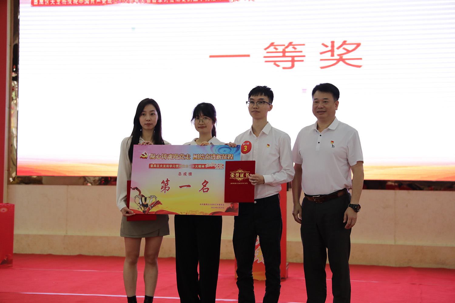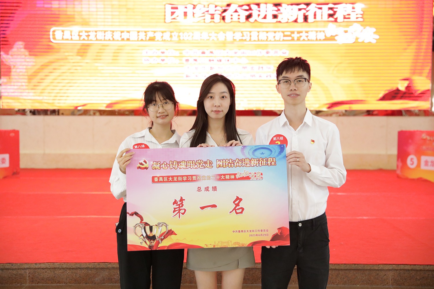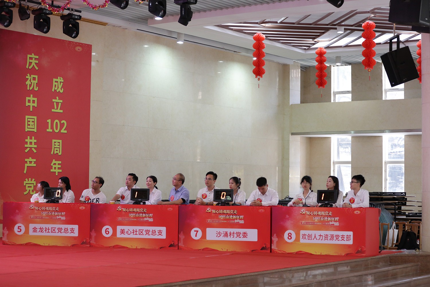 为庆祝建党102周年,6月29日下午,中共番禺区大龙街工作委员会联合番禺区融媒体中心于新水坑文化中心举办“学习贯彻党的二十大精神知识竞赛”活动。经过激烈角逐,欢创集团党支部代表队勇夺桂冠!