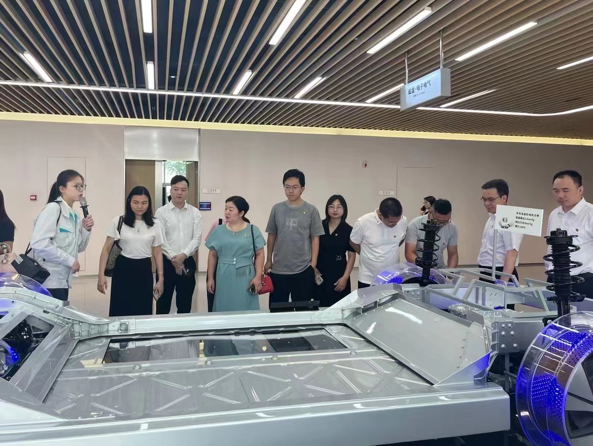 沿着习近平总书记的考察路线,在讲解员的带领下,党员们首先参观了科技展厅,了解纯电专属平台、快速充电等技术亮点,亲身体验先进科技带来的个性化和定制化服务。随后,一行人走进智能化生产工厂,近距离观摩广汽埃安新能源汽车生产车间,实地感受到由科技创新驱动汽车行业高质量发展成果。党员同志们纷纷表示被广汽集团强大的自主研发实力和对高质量、高效率的不懈追求所震撼,谨记总书记谆谆教诲,以“红心”致匠心。